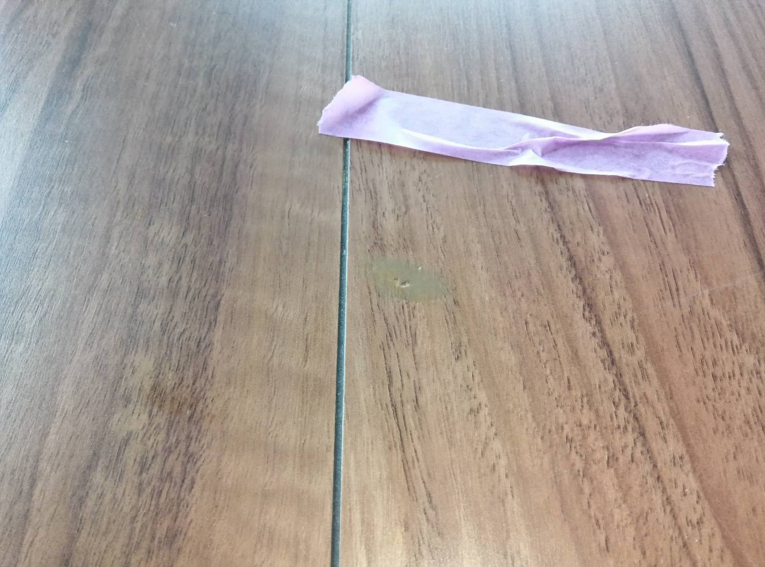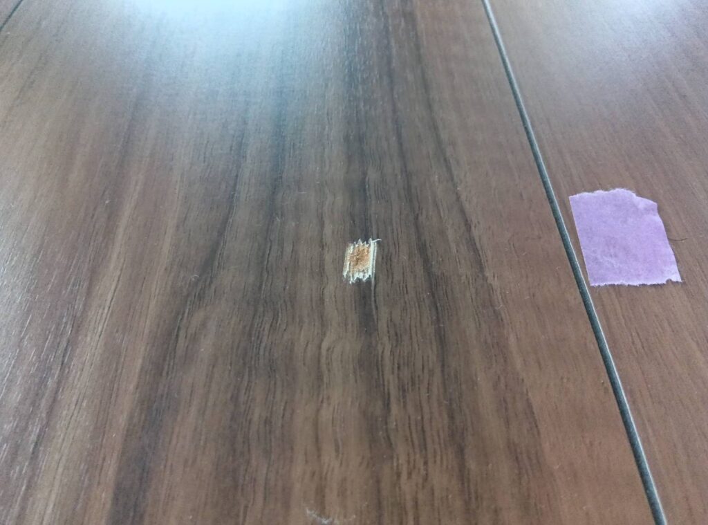 そこにパテを埋めても、繊維状になった床材部分が膨張して、最終的に傷が目立つ事になるらしい。