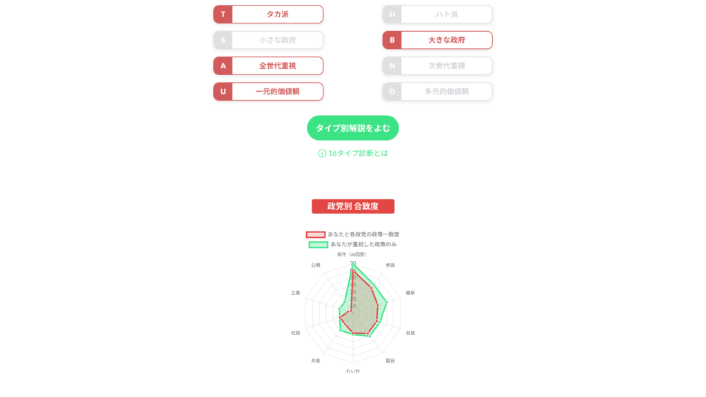 このサイトを使えば、自分の思想と各党の政策との一致度数が確認できます。